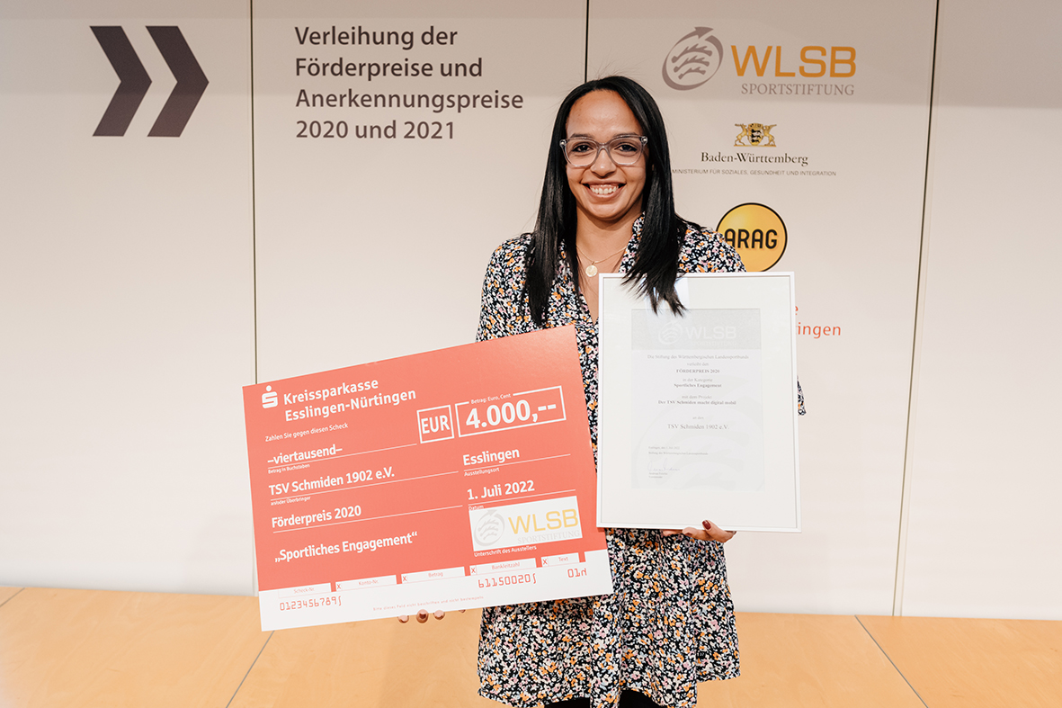 Wir sind stolz darauf, dass wir in der Kategorie „sportliches Engagement“ mit dem Projekt „der TSV Schmiden macht digital mobil“ den Förderpreis 2020 gewinnen konnten. Unsere Kollegin Sarah aus dem Sportbereich Capoeira war in Esslingen vor Ort und nahm den Preis, notiert mit 4.000€, hocherfreut entgegen. Herzlichen Dank für die Ehrung!