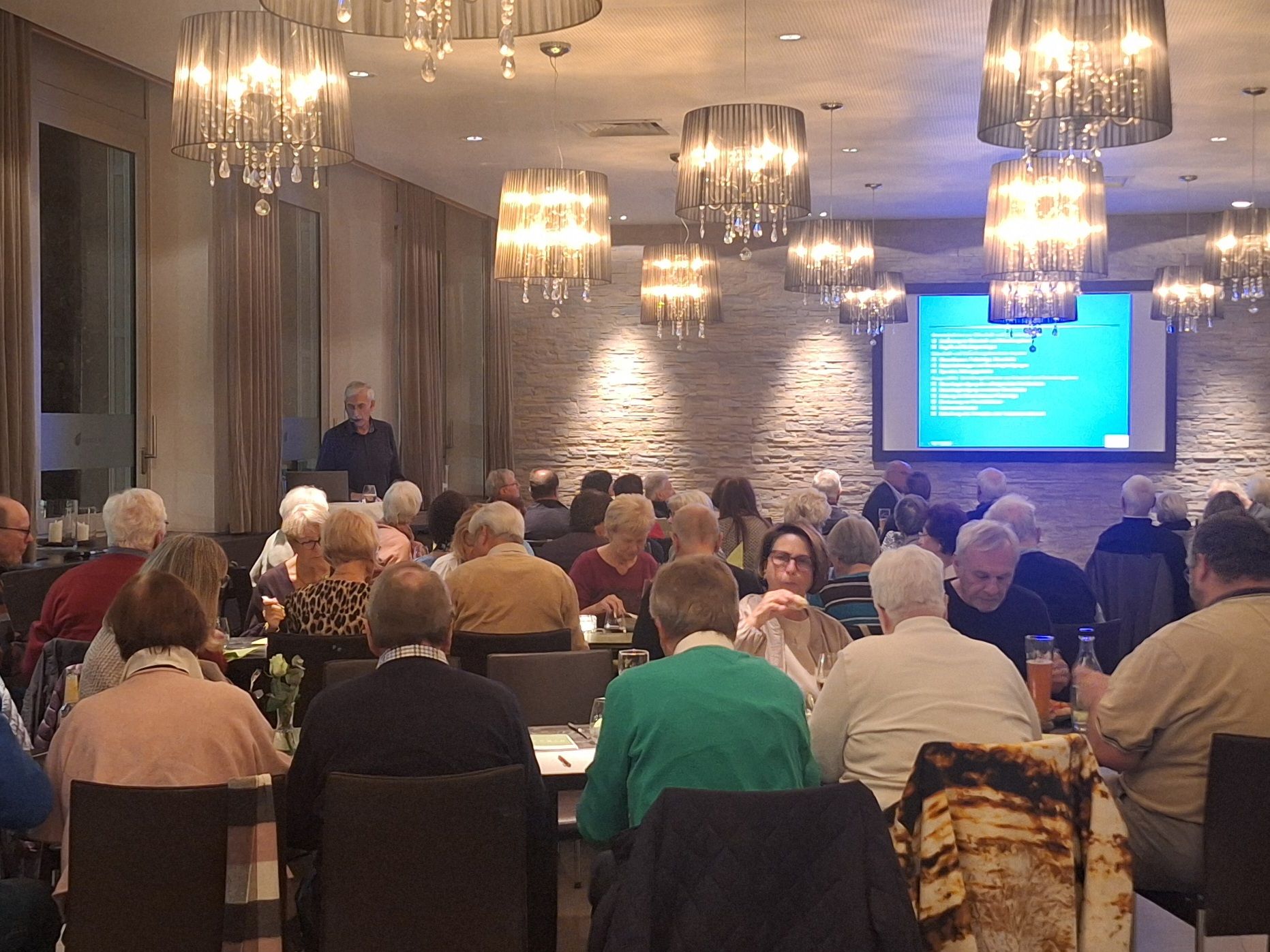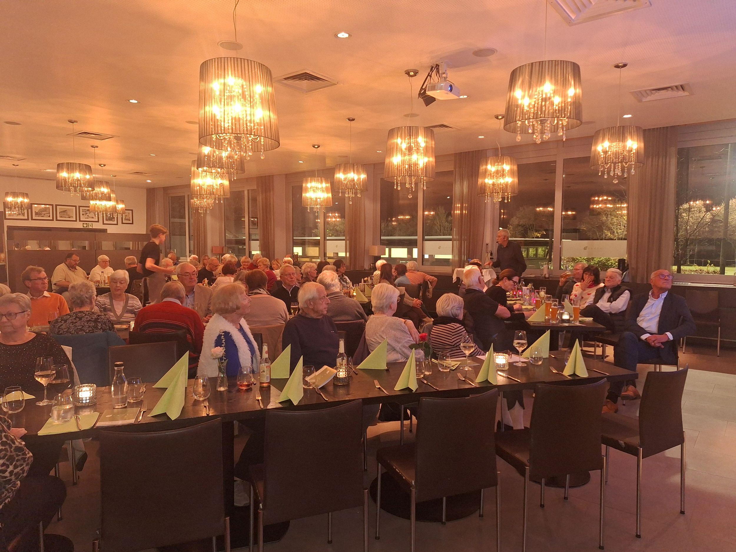 Kulinarisch verwöhnt wurden die Anwesenden selbstverständlich wie immer mit leckerem Essen und Getränken von der Familie Porro. Für alle Teilnehmenden war das diesjährige Herbstessen wieder einmal ein sehr kurzweiliger und geselliger Abend bei guter Stimmung und unterhaltsamen Gesprächen. Auf die musikalische Untermalung musste an diesem Abend leider verzichtet werden. Lange Jahre hat Dr. Roland Jäger an dieser Stelle immer tatkräftig unterstützt. Leider ist er im Mai dieses Jahres verstorben, und wir haben für ihn noch keinen adäquaten Ersatz gefunden.