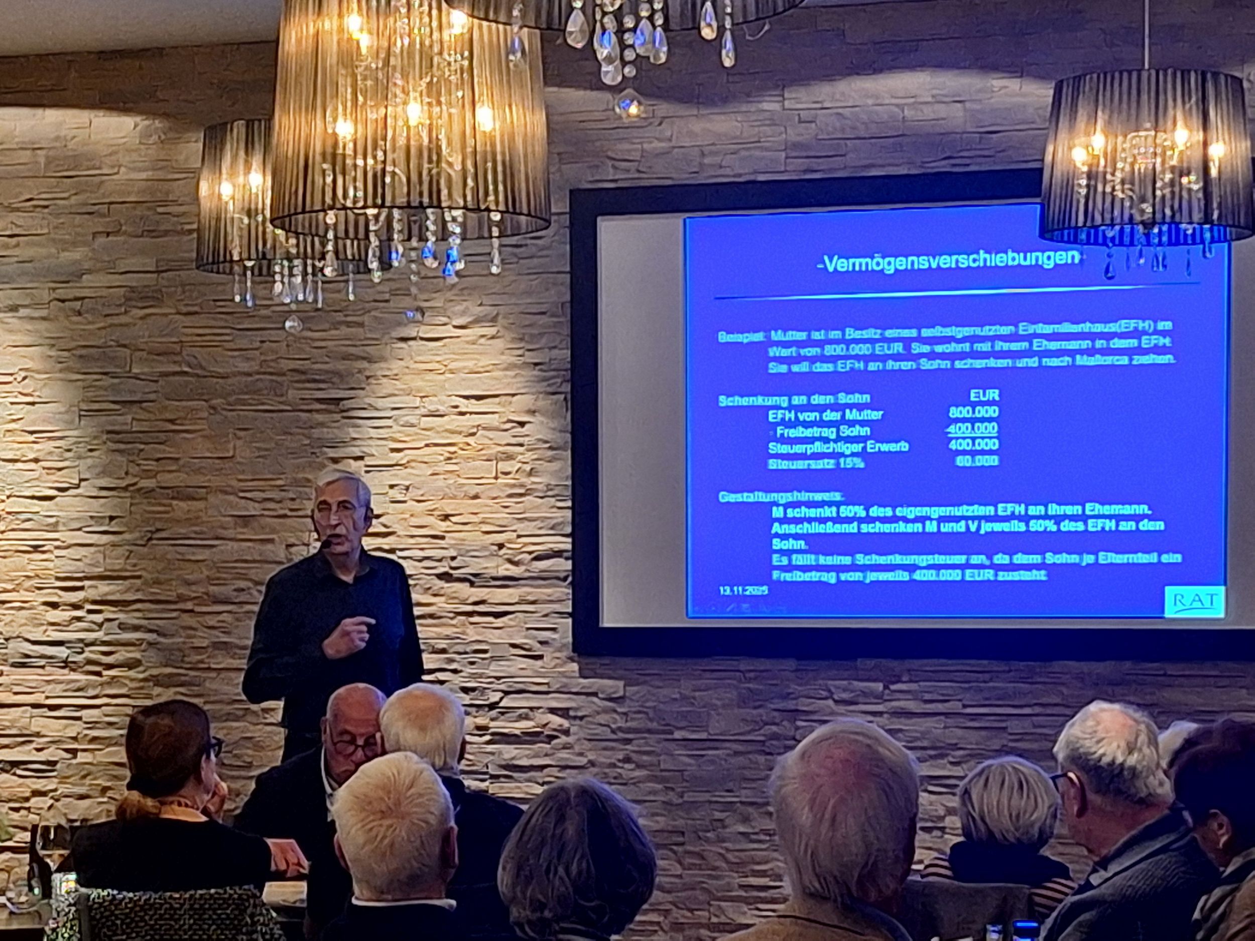 Nachdem die Beiratsvorsitzende Andrea Palm im Rahmen ihrer Begrüßung einen kurzen Überblick über die diesjährigen Aktivitäten gab, informierte anschließend unser Vereinspräsident Ulrich Lenk über den aktuellen Stand beim TSV Schmiden. Als Hauptredner war unser Kuratoriumsmitglied Prof. Dr. Helmut Rieker von Rieker Audit Tax, Wirtschaftsprüfer und Steuerberater, eingeladen. Mit großem Interesse lauschten die Anwesenden seinen sehr informativen Ausführungen über erbschafts- und schenkungssteuerliche Aspekte, über die auch im Nachgang noch angeregt diskutiert wurde.
