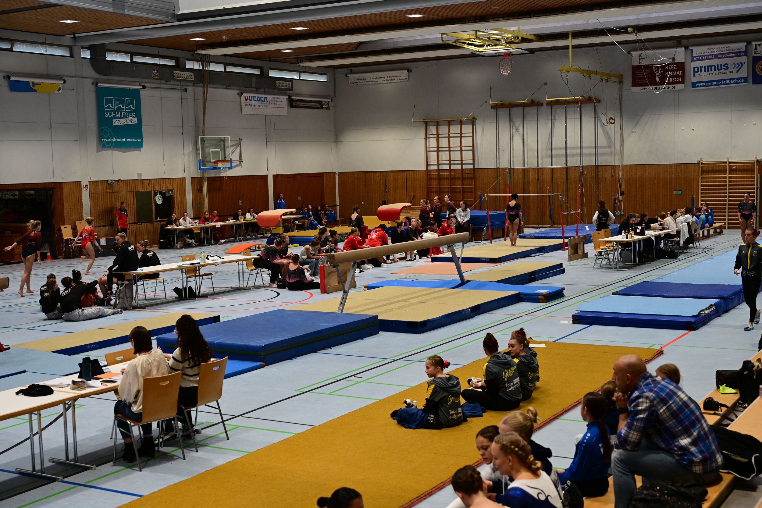 Anschließend waren unsere jüngsten Turnerinnen gefragt: In der F-Jugend (Jahrgang 2018) gingen Jara Heckert, Rosa Laible sowie Helena und Johanna Wurster an die Geräte. Für einige war es der erste richtige Wettkampf – entsprechend aufregend war der Tag. Die Mädchen turnten an Sprung, Reck, Balken und Boden Übungen der P3 bis P5 und erreichten gemeinsam einen guten 6. Platz.