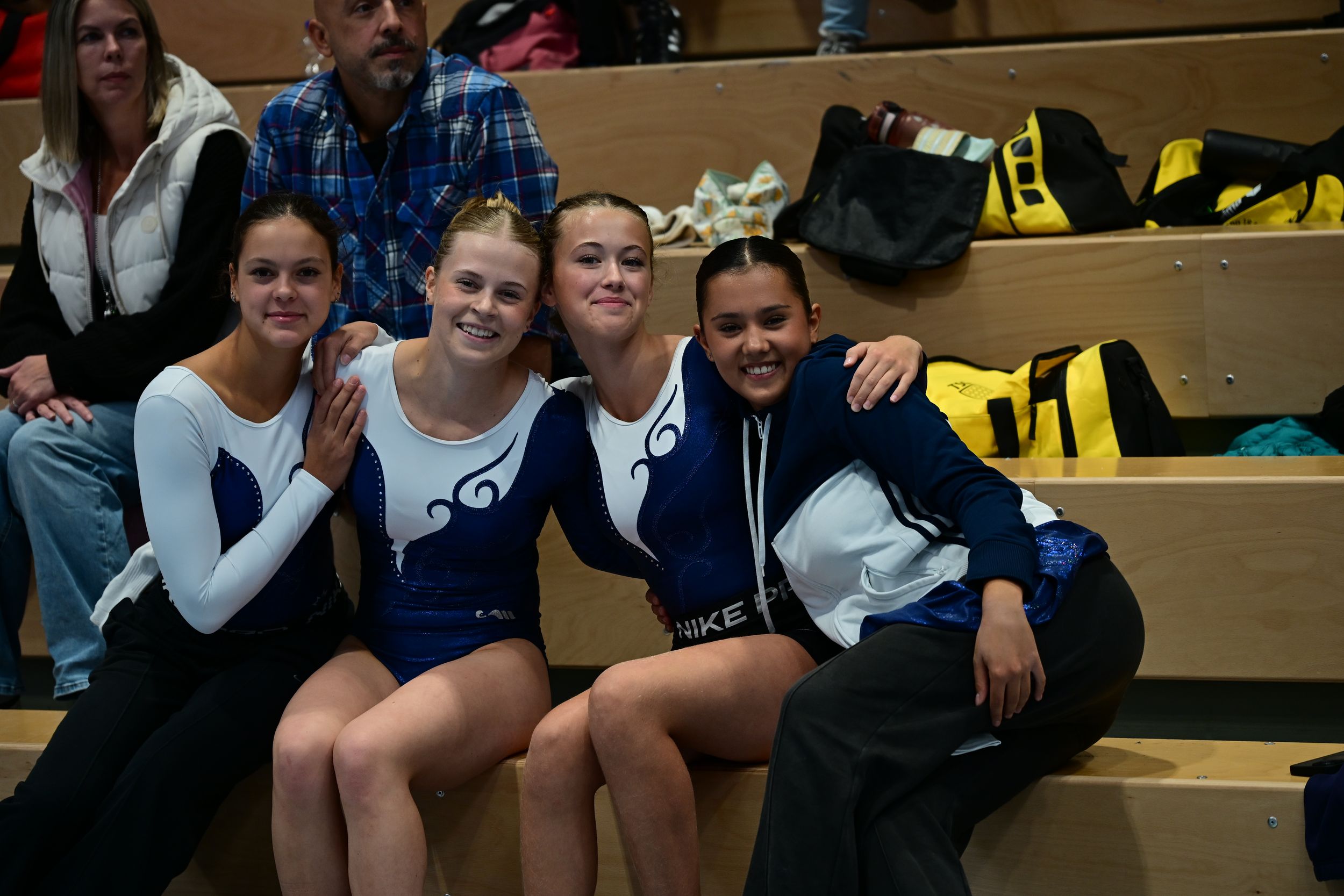 Los ging es am Samstagmorgen mit dem Kür-Vierkampf im RWK Code de Pointage+, der höchsten Klasse des Rahmenwettkampfes. Für unser Ligateam traten Leni Bürkle, Paula Kohl, Isabel Met, Joya Molina und Rebecca Pimenta Schoell an. In einem hochklassig besetzten Wettbewerb lag der Fokus vor allem darauf, neue Elemente auszuprobieren und wieder Wettkampferfahrung zu sammeln. Am Ende belegte das Team einen soliden 4. Platz.