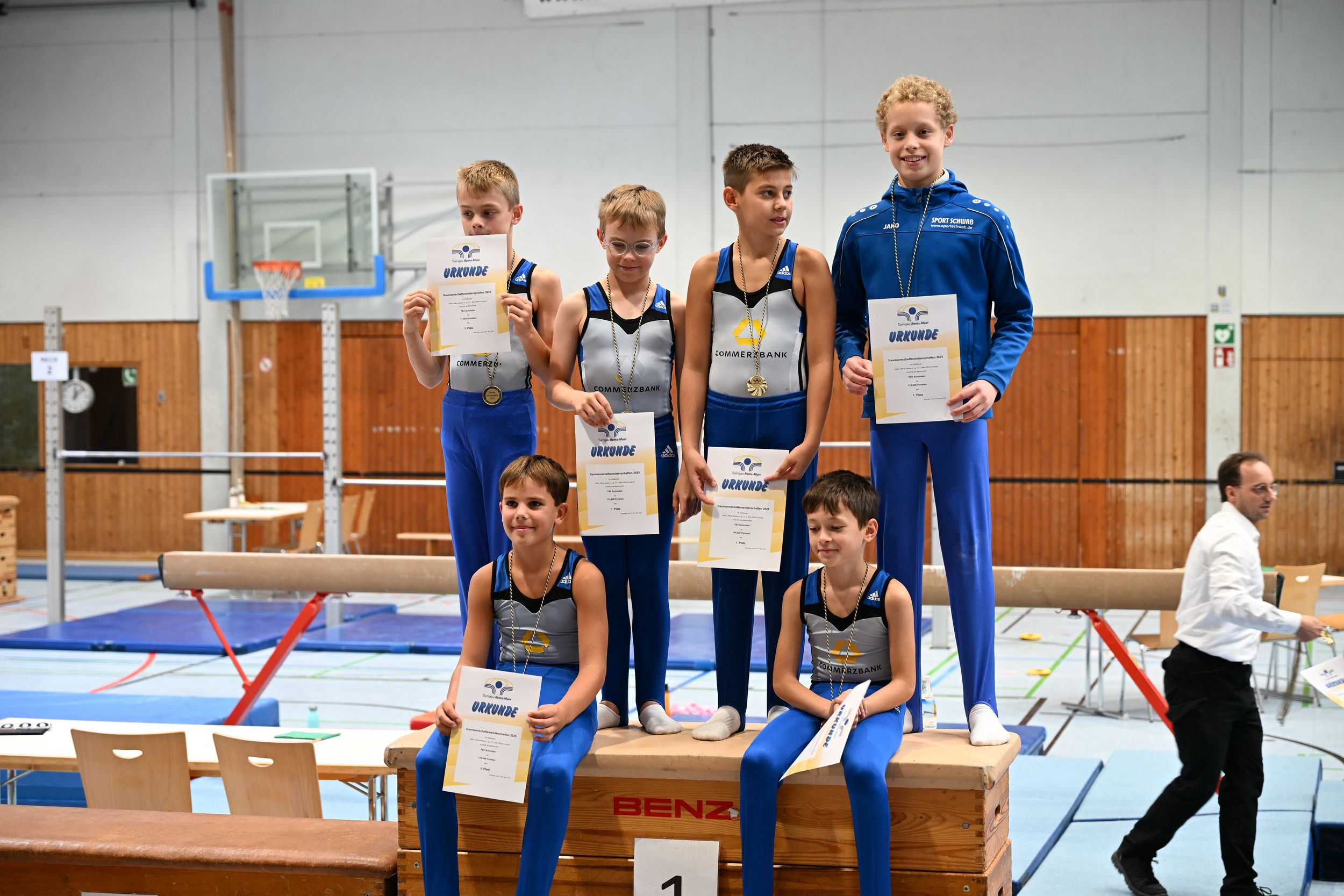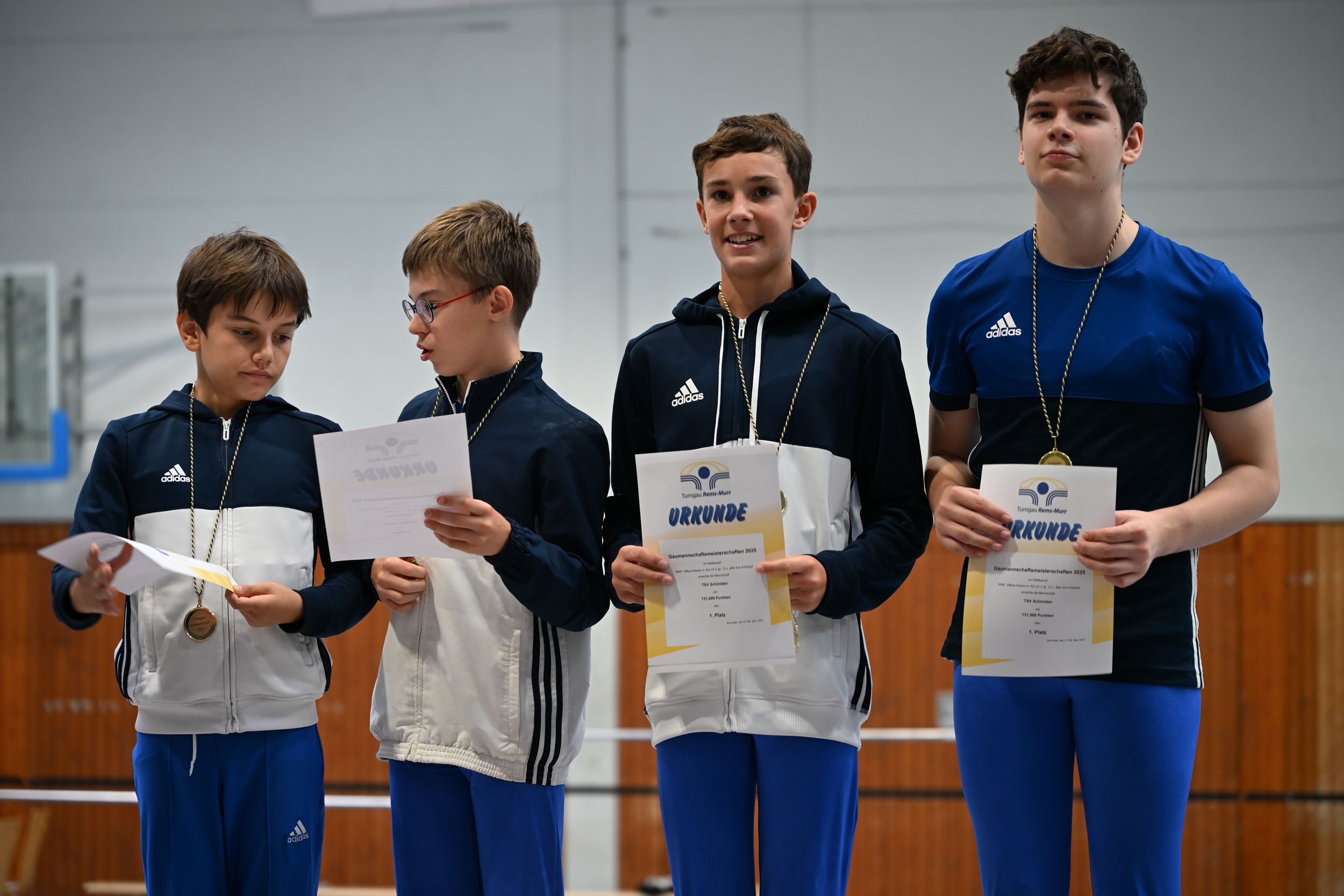 Parallel traten auch unsere Jungenmannschaften an. Leider hatten sich in den Altersklassen keine weiteren Vereine gemeldet – der TSV Schmiden war der einzige Starter. Das tat der Motivation jedoch keinen Abbruch: Unsere Jungs zogen den Wettkampf voll durch und zeigten saubere Übungen an allen Geräten.